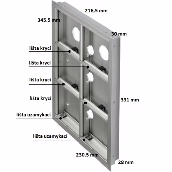 -montáž vertikální 216,5 x 331 x 28 mm (š x v x h)